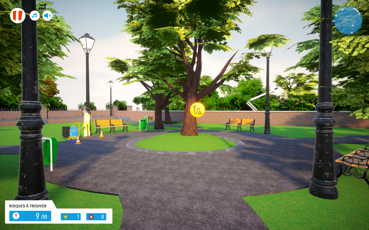 Dans ce module, tu es sur un chantier d’entretien d’un parc. Ta mission : trouver les risques cachés et les rendre sans danger.